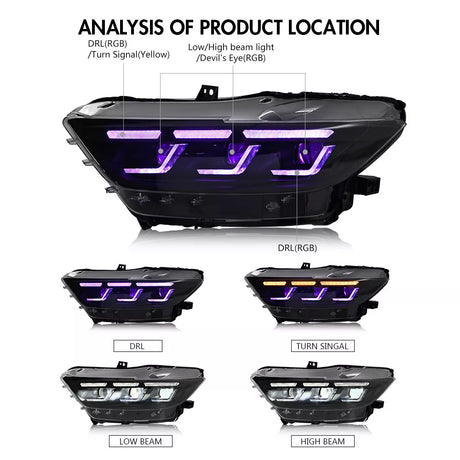 2024+ Ford Mustang S650 RGB Headlights With Gloss Black Housing (Pair)