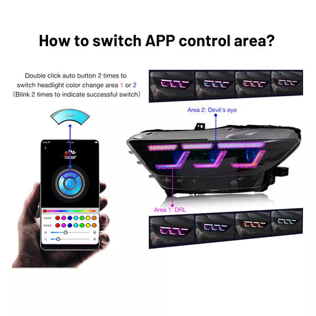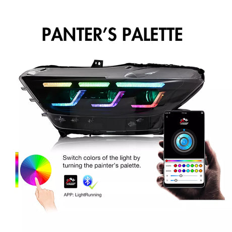 2018-2023 Ford Mustang RGB S650 Style Headlights - Flow Series