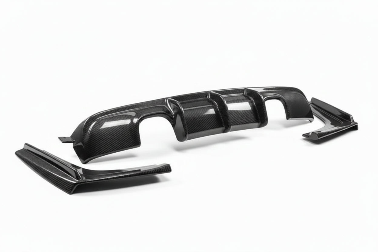 Crafted from premium 2x2 weave carbon fiber and finished in a deep gloss UV-protected clear coat, this diffuser delivers high-end styling with long-term durability—perfect for both daily-driven builds and track-focused setups.
