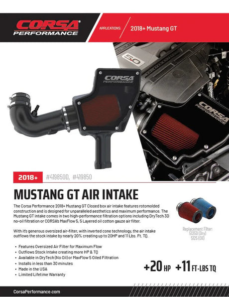 Corsa 2018-2023 Ford Mustang GT 5.0L V8 Carbon Fiber Air Intake w/ DryTech Filter